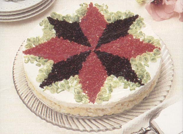 Just before serving, carefully rinse the caviars in separate bowls of water, strain, and spread on towels to drain. Run a knife around the edge of the spring form pan and remove the ring. Spread the caviar (and green onions if used) into an aesthetic design use wax paper for masking and toothpicks to move the caviar.