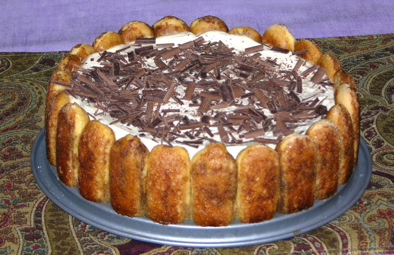 Tiramisu is a light Italian dessert of ladyfingers infused with expresso and liqueur, layered with a rich cheese filling and topped with grated chocolate. The name tiramisł means "pick-me-up", referring to the two caffeine-containing ingredients, espresso and chocolate. 3/4 cup expresso 24 ladyfingers (7 oz bag) * 4 egg yokes 1 lb mascarpone cheese (room temperature) 1/2 cup whipping cream semi-sweet chocolate (room temperature) Mix together the expresso, coffee liqueur and dark rum. Place a waxpaper strip around the inside wall of an assembled eight inch springform pan. Cut ten to twelve lady fingers exactly in half and use a pastry brush to paint the expresso mixture onto each ladyfinger half. Arrange the ladyfingers, cut side down around the parameter of the pan, against the waxpaper. Do not soak these parameter ladyfingers, as they will fall apart if they absorb too much liquid. Make a zabaglione: Place egg yokes in the top of a double boiler and mix in Splenda, orange liqueur, rum, Marsala, zest and vanilla extract. Place over gently boiling water and stir continually with a hand mixer. The zabaglione will thicken. Bring the zabaglione to 140F and remove from heat. Place the pan in cold water to cool. Fold the mascarpone cheese into the cooled zabaglione. Beat the whipping cream until thick. Fold the whipped cream into the zabaglione. Line the bottom of the springform pan with 1/2 of the remaining ladyfingers which have been well painted with the expresso mixture. Layer 1/2 of the zabaglione over the ladyfingers. Make another layer with the remaining expresso soaked ladyfingers. Layer the remaining zabaglione over ladyfingers. Cover with plastic wrap and refrigerate overnight. Before serving, let the tiramisu come almost to room temperature, remove the pan's side and the waxpaper. Garnish with semi-sweet chocolate curls. * Get two (2) bags of ladyfinger if your springform pan is over eight inches in diameter. One (1) bag is lean for an eight inch pan. |